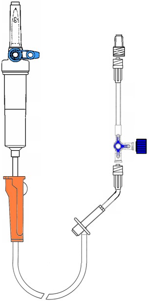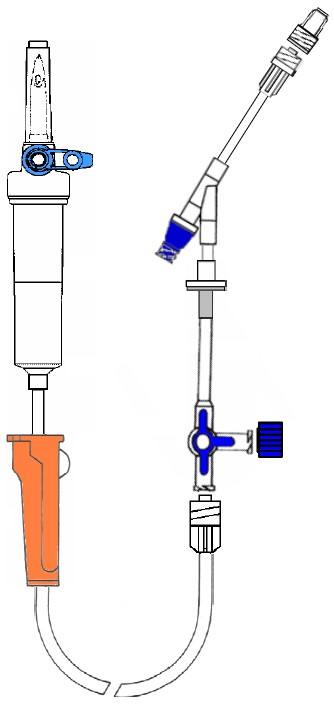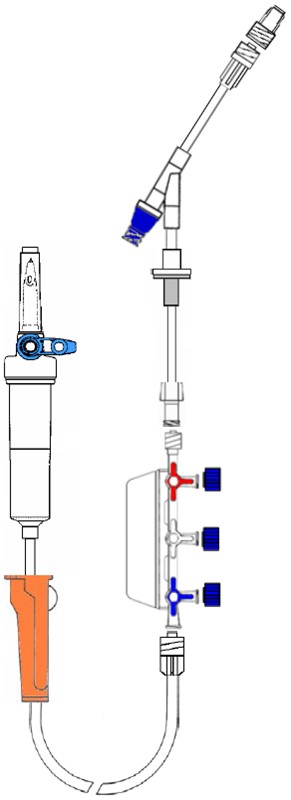 Infuusleiding met luchtinlaat + STOPAR + kranenbalk 3 kranen + terugslagklep + Y naaldloos + leiding 20 cm + purgeerfilter